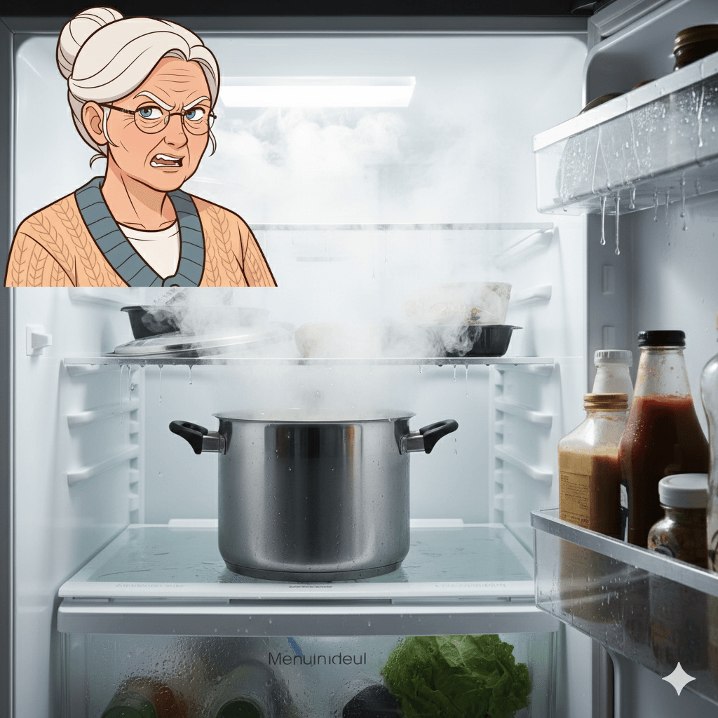 全く、仕方ないねぇ。熱い料理は、まず常温まで冷ましてから冷蔵庫に入れるのが、賢いあんたになるための第一歩だ。